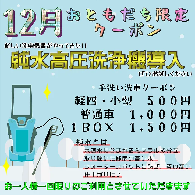 12月のクーポンは大人気洗車クーポン♪